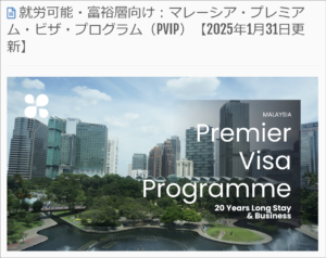 弊社はマレーシア・プレミアム・ビザ(PVIP)のサポートも行っているのですが、