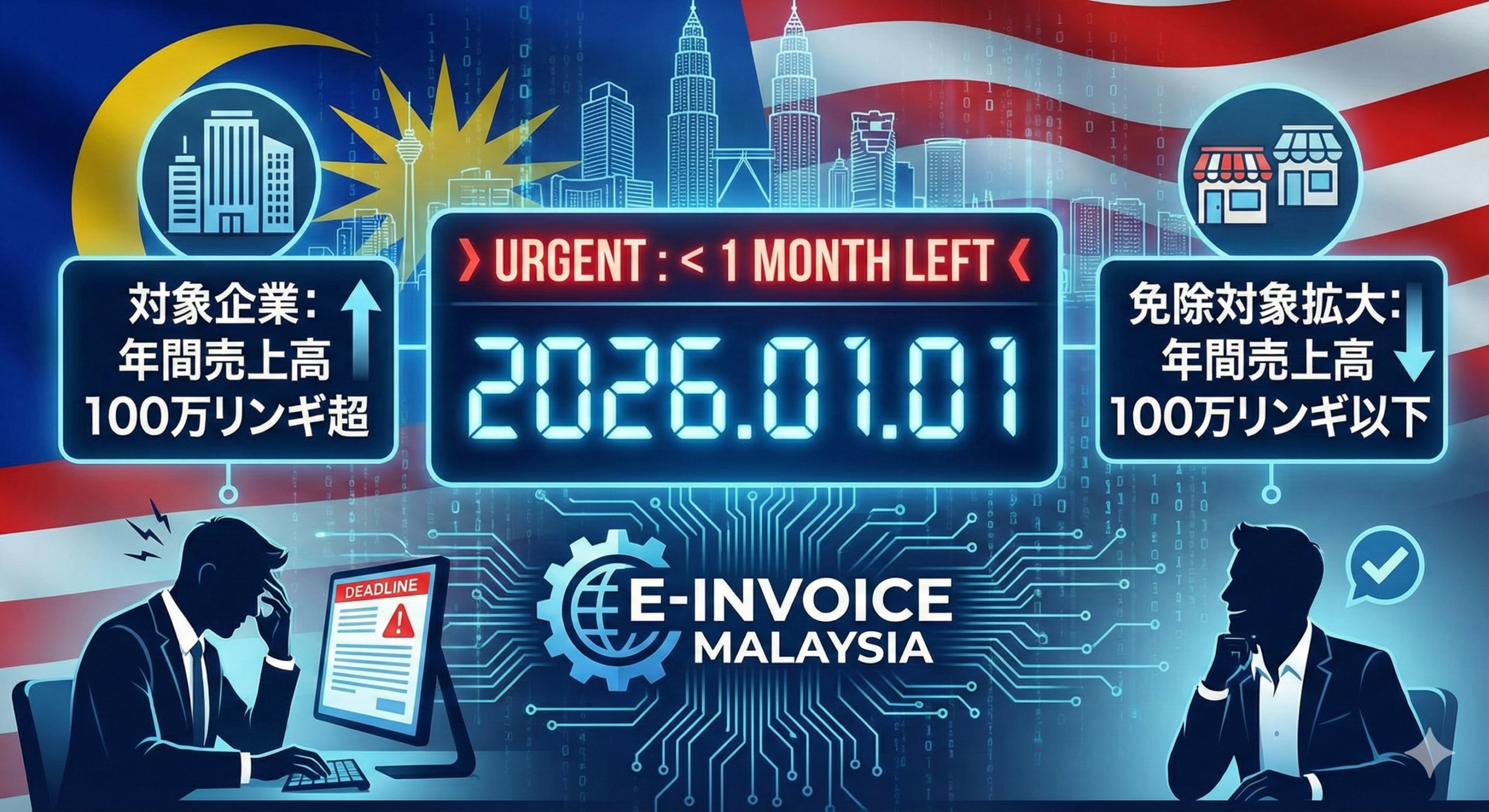 その一方で、年間売上高が100万リンギットを超えるすべての企業にとって、義務化開始日は2026年1月1日のまま変更なく、残された準備期間は1ヶ月を切っています。対象企業は下記をご参照のうえ、準備をお進めください。
